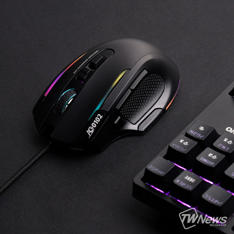 AG0102는 커스텀이 가능한 RGB 유선 마우스로 네이버 스마트스토어, 쿠팡, 옥션 등에서 특가이벤트를 함께 진행하고 있다.