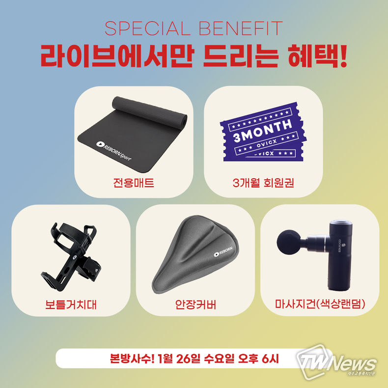 이번 하이마트 하트라이브를 통해 선보이는 오빅스 리본 스핀바이크는 트레이너의 수업을 시청할 수 있는 모니터 결합 상품을 무이자 할부로 합리적으로 만날 수 있으며, 하이마트만의 특별 이벤트로 콘텐츠 이용이 가능한 3개월 정기 구독 수강권, 마사지건, 보틀 거치대, 전용러그, 안장커버 등 다양한 혜택을 추가로 증정한다.