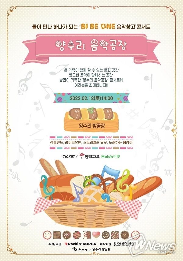 [제주교통복지신문 신혜정 기자] 문화콘텐츠전문제작기획사 락킨코리아가 오는 2월 12일 토요일 오후 2시부터 양수리 빵공장에서 둘이 만나 하나가 되는 'BI BE ONE 음악창고' 콘서트를 개최한다고 24일 밝혔다.