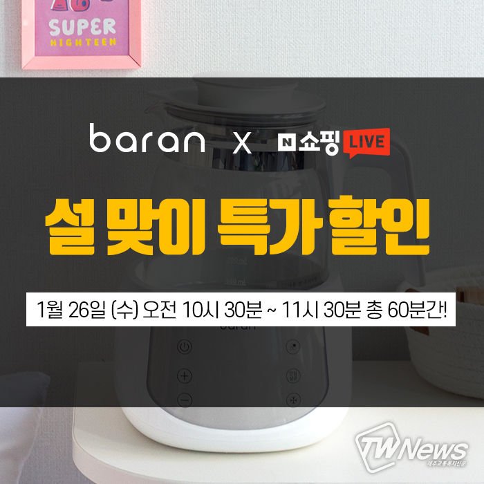 한편, 바란 관계자는 “곧 다가올 설날을 맞이해 바란 분유포트를 특별 할인가에 제공하는 쇼핑 라이브를 준비하게 됐다”라며 “이번 라이브 방송에서는 특별 할인 혜택을 물론 바란 분유포트에 대한 자세한 설명도 진행될 예정이니 많은 시청바란다”라고 전했다.