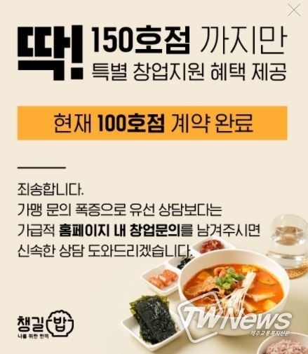 [제주교통복지신문 김대훈 기자] 주식회사 아이언가이즈의 1인 한식 프랜차이즈 ‘챙길밥’이 가맹점 150호점 한정 ‘창업 지원’ 혜택을 제공한다고 4일 밝혔다.