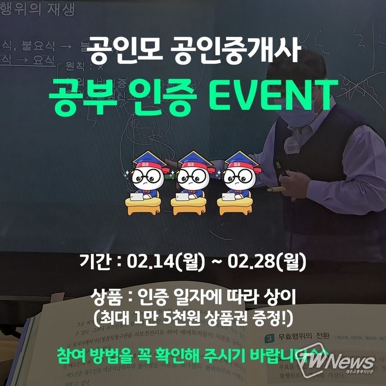 [제주교통복지신문 신혜정 기자] 공인중개사 무료인강을 제공하는 공인모에서 2022년 공인중개사 시험일정 대비 위한 공부 인증 이벤트를 진행하고 있다고 21일 밝혔다.