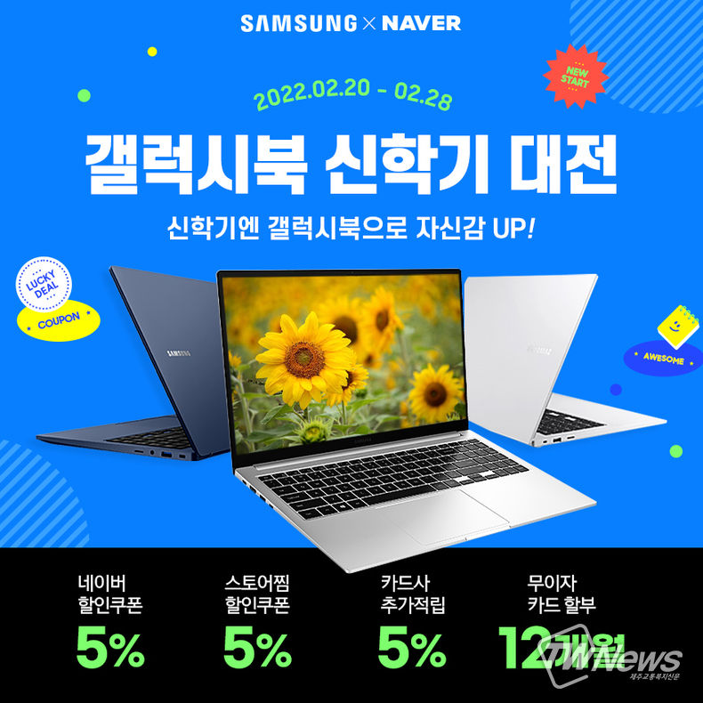 [제주교통복지신문 신혜정 기자] 삼성 공식 파트너 ㈜코인비엠에스는 삼성전자 인기 노트북 구매 찬스, 갤럭시북 ‘신학기 특가’ 기획전을 오는 2.28(월)까지 9일간 코인비엠에스 네이버스토어를 통하여 진행한다고 밝혔다.