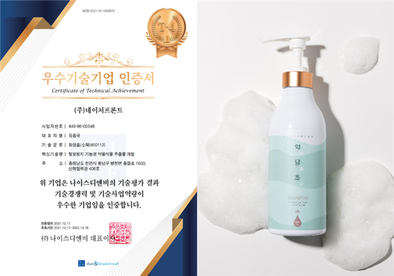 [제주교통복지신문 전희연 기자] 약담초 샴푸·치약 등 기능성 생활용품 전문기업 네이처프론트(대표 유종국)가 ‘기능성 약용식물 추출물 개발’을 핵심기술로 기술신용평가에서 우수기술기업 인증을 받았다고 17일 밝혔다.