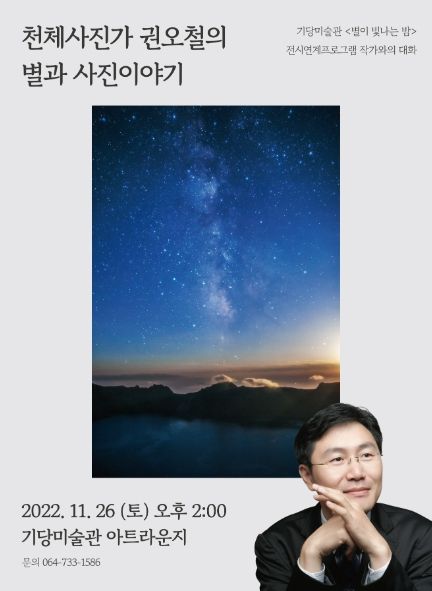 현재 기당미술관에는‘별’을 주제로 전시를 진행하고 있으며, 참여작가 4인중 천체사진을 찍는 권오철 작가를 모시고 별과 사진작업에 대한 다양한 이야기들을 듣는 기회를 갖는다