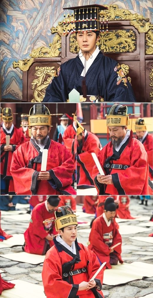 또한 권율(박문수 역)은 벅차 오르는 감정을 숨기지 못한 채 감격 어린 모습으로 즉위식을 바라보고 있다. 이경영(민진헌 역)은 정일우와 변화된 관계를 엿보게 하듯 담담한 표정으로 시선을 끈다.