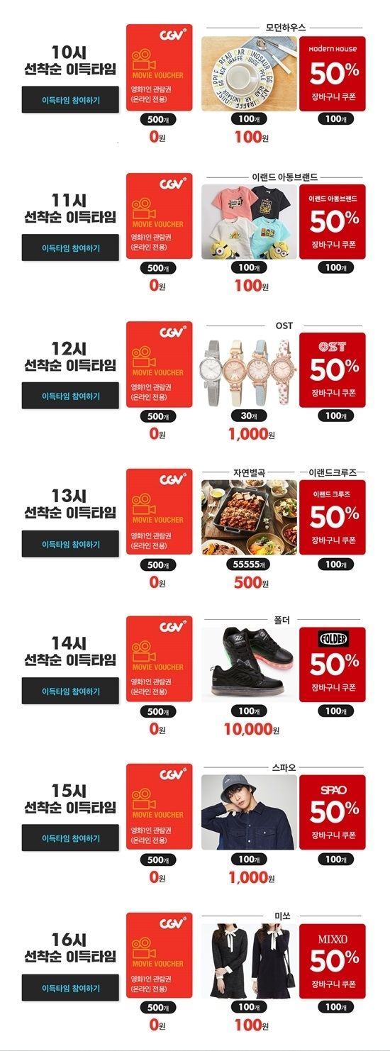 아울러 영화티켓은 매 시간 500개씩 3500매, 50% 할인 쿠폰도 시간마다 100장씩 풀린다.