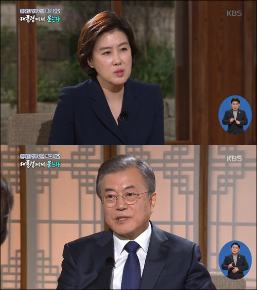 한편 10일 시청률 조사회사 닐슨코리아에 따르면 전날 오후 8시 30분부터 9시 57분까지 약 90분간 진행된 KBS 1TV '대통령에게 묻는다' 시청률은 9.5%로 집계됐다.