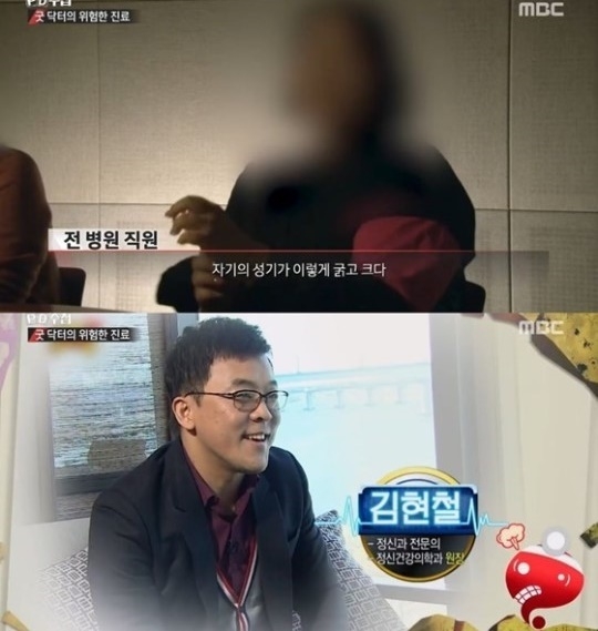 김현철 정신과의사에 대해 한 직원은 '매사에 하는 말들이 음담패설'이라며 '자기의 신체부위가 굵고 크다고 했다'고 폭로했다.