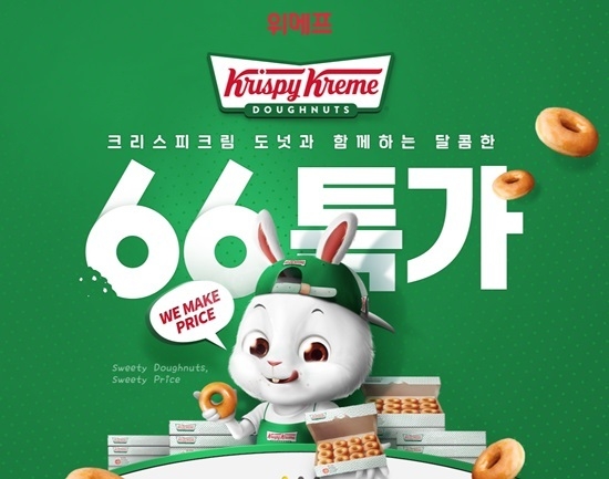 업계에 따르면 위메프는 오는 12일까지 계속되는 '66특가'의 일환으로 이날 하루 크리스피크림도넛을 무려 90% 싸게 판매한다.