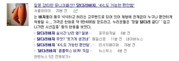 누리꾼들은 "정말 닭다리 같다" "닭다리바지 입고 나가면 시선집중" 등의 반응을 보였다.