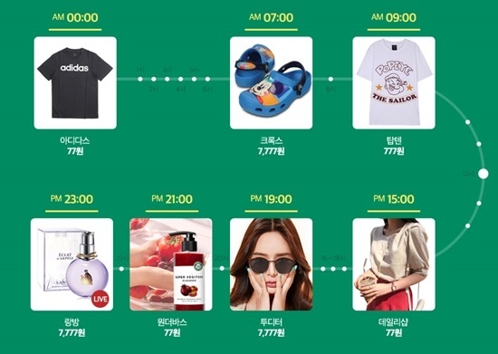 이날 77특가 777포인트 행사에서는 7종의 상품 외에도 티셔츠, 슬리퍼, 운동화, 속옷, 귀걸이 등 다양한 제품이 평소보다 저렴하게 판매된다.