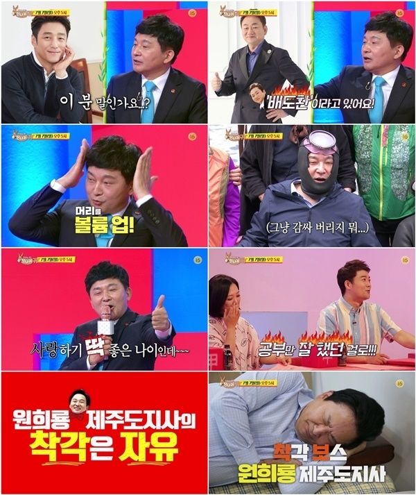 하지만 곧바로 이어진 장면에서는 ‘내 나이가 어때서’ 노래를 열창하는 원희룡 지사의 모습에 심영순과 현주엽이 쓰러지고, 이에 참을 수 없었던 전현무는 “지사님은 공부만 잘했던 걸”라고 급하게 정리했다.