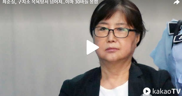 이에 따르면 '국정농단' 사건의 피고인 최순실 씨가 구치소 수감 중 목욕탕에서 샤월르 하던 중 넘어져 이마가 찢어지는 부상을 입었다.
