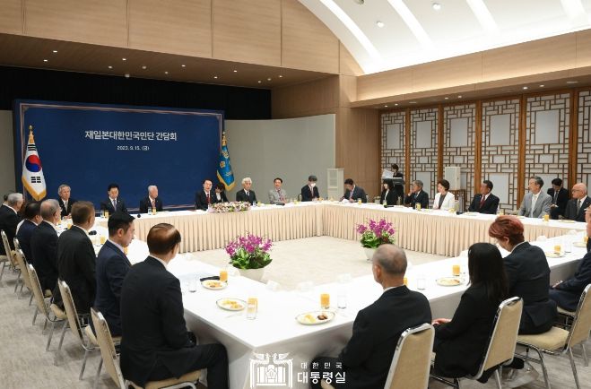 [제주교통복지신문 김강석 기자] 윤석열 대통령은 9월 15일 오후, 용산 대통령실에서 재일본대한민국민단 간담회에 참석했다. 민단은 재일동포의 권익보호와 법적 지위 향상을 도모하는 대표적 재일동포단체이다.