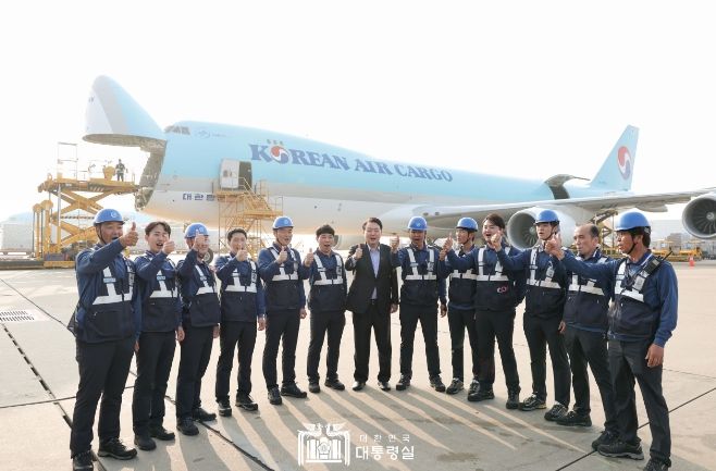 [제주교통복지신문 김강석 기자] 윤석열 대통령은 9월 2일 오후, 인천국제공항 대한항공 화물 터미널을 방문해, 항공 화물 수출 현장을 둘러보고 현장 근로자들을 격려했다.