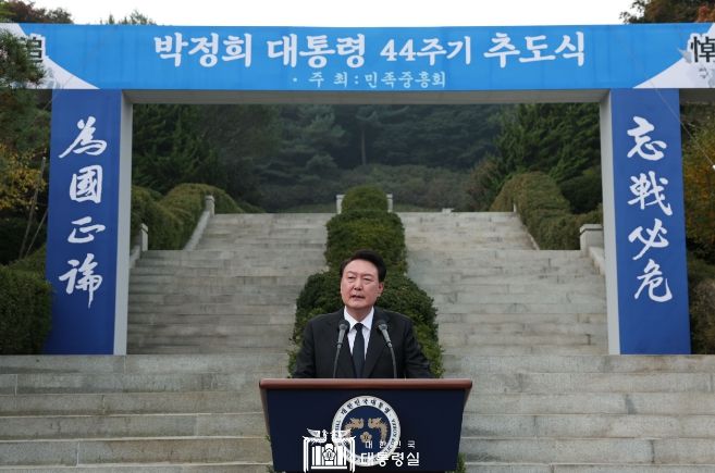 대통령은 추도사에서 박정희 前 대통령이 ‘하면 된다’는 기치로 국민을 하나로 모아 한강의 기적이라는 세계사적 위업을 이루어내셨다면서, 지금 세계적인 복합위기 상황에서 우리는 박정희 前 대통령의 정신과 위업을 다시 새기고 이를 발판으로 다시 도약하는 대한민국을 만들어야 한다고 강조했다.