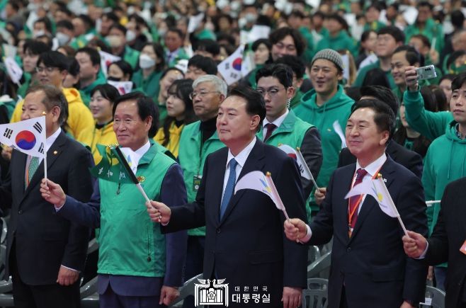 [제주교통복지신문 김강석 기자] 윤석열 대통령은 11월 12일 오후 경기도 일산 킨텍스에서 열린 「2023전국새마을지도자대회 ‘청년의 약속’ 선포식」에 참석해 새마을지도자와 청년새마을 회원들을 격려했다.