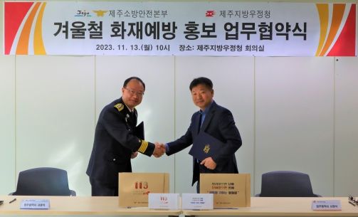 [제주교통복지신문 김현석 기자] 제주특별자치도 소방안전본부는 13일 제주지방우정청과 겨울철 화재예방 홍보를 위한 업무협약을 체결했다고 밝혔다.