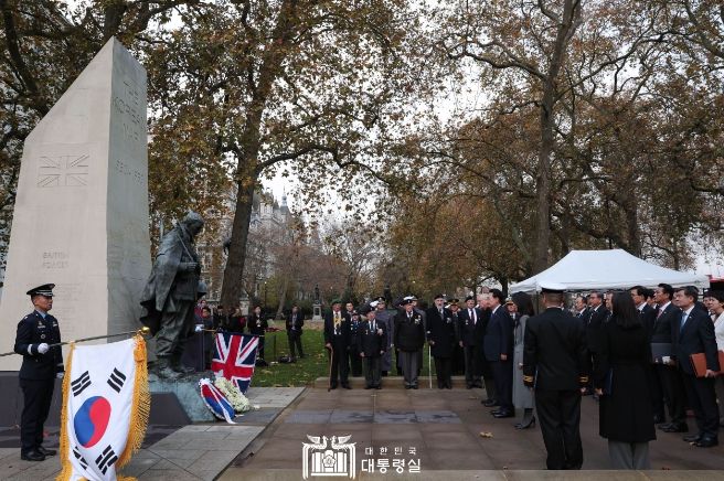 [제주교통복지신문 김강석 기자] 영국을 국빈 방문 중인 윤석열 대통령 부부는 11월 21일 오후 한국전 참전 기념비와 무명 용사의 묘에 헌화했다.