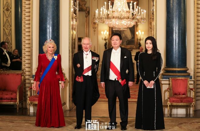 [제주교통복지신문 김강석 기자] 영국을 국빈 방문 중인 윤석열 대통령 부부는 11월 21일 저녁 찰스 3세 국왕이 버킹엄궁에서 주최한 국빈 만찬에 참석했습니다. 만찬에는 우리 공식 수행원과 기업인, 영국의 각계 주요 인사 180여 명이 참석했다.