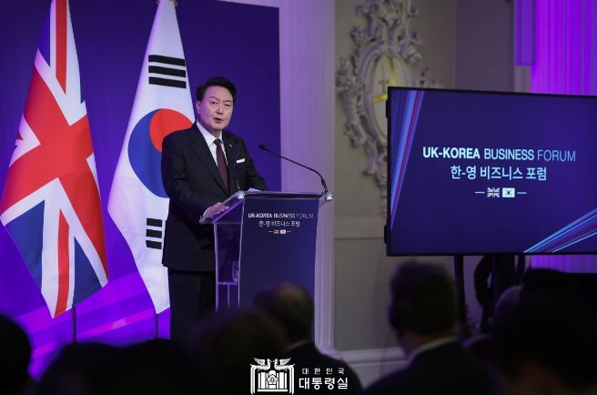 대통령은 비즈니스 포럼 축사를 통해 영국이 울산조선소와 고리원전 1호기 건설 등 대한민국의 산업화에 든든한 조력이 되어준 점과, 반도체․바이오․항공․방산․5G․해상풍력 등 첨단산업 분야에서 양국 기업 간 활발한 협력을 평가했다.
