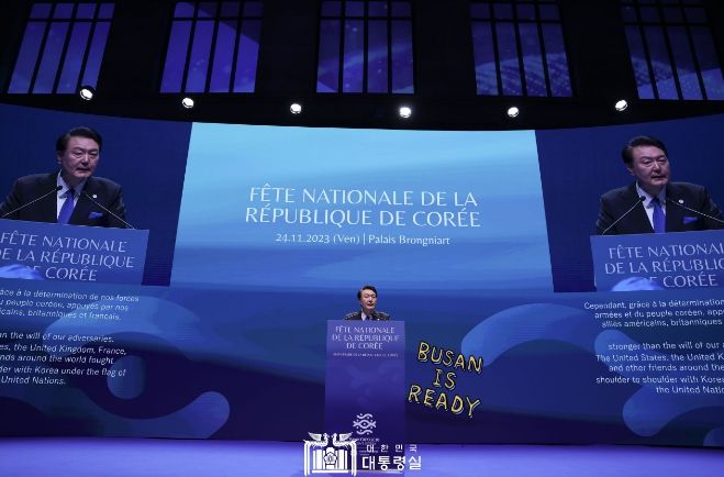 [제주교통복지신문 김강석 기자] 윤석열 대통령 부부는 2030 부산세계박람회 유치 성공을 위한 프랑스 파리 방문 둘째 날 마지막 공식 일정으로 오늘(현지시간 11. 24, 금) 저녁 프랑스 파리의 브롱냐르궁(宮)에서 개최된 국경일 리셉션에 참석했다.