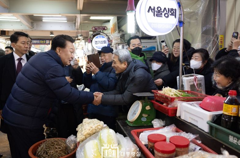 [제주교통복지신문 김강석 기자] 윤석열 대통령은 1월 25일 경기도의 대표 전통시장인 의정부제일시장을 찾아 최근 불경기에 동절기 한파까지 겹쳐 어려움을 겪고 있는 상인들을 격려하고 현장의 이야기를 경청했다.