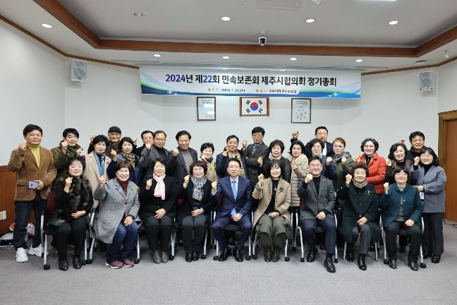[제주교통복지신문 김지홍 기자] 변영근 제주시 부시장은 1월 31일 시청 본관 회의실에서 열린 2024년 민속보존회 제주시협의회 정기총회에 참석해 지역문화예술발전 방안을 논의하고, 소통의 시간을 가졌다.