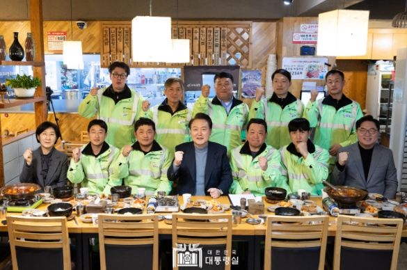 [제주교통복지신문 김강석 기자] 윤석열 대통령은 설 연휴 첫날인 2월 9일 서울 동작구 한 식당에서 연휴에도 거리 청소와 폐기물 수거 등 사회에 꼭 필요한 일을 묵묵히 수행하고 있는 환경공무관들과 조찬을 함께 하고 노고에 감사를 전했다.