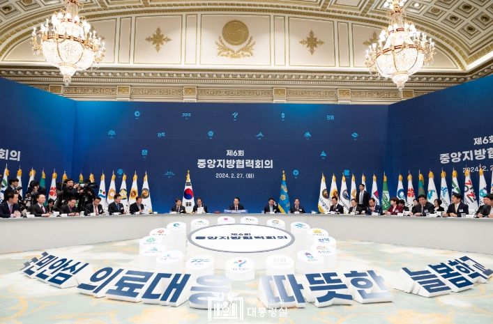 [제주교통복지신문 김강석 기자] 윤석열 대통령은 2월 27일 오후 영빈관에서 제6차 중앙지방협력회의를 주재했다. 오늘 회의는 중앙지방협력회의 개최 후 전국 17개 시도지사와 시·도 교육감이 한자리에 모인 첫 사례로, ‘의료 개혁’과 ‘2024년 늘봄학교 준비’ 2가지 안건을 논의했다.