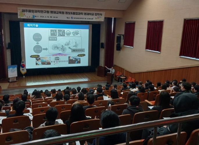 [제주교통복지신문 박희찬 기자] 제주도교육청 제주융합과학연구원은 16일 정보 영재학급과 융합과학 영재학급 총 55명을 대상으로 '2024 제주융합과학연구원 정보·융합과학 영재학급 입학식'을 개최했다.