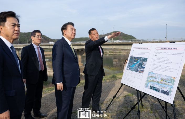 [제주교통복지신문 김강석 기자] 윤석열 대통령은 4월 2일 오후 충남 공주시 옥룡동을 찾아 수해 현장을 둘러보고 복구 상황을 점검했다. 공주시는 작년 여름 집중호우로 인해 도로와 주택이 침수되고 공산성 성벽 일부가 무너지는 등 각종 피해가 발생했던 곳이다. 대통령은 작년 7월 수해 발생 직후 공주시 대학리 일원의 피해 현장을 찾아 주민들을 위로하고 복구 지원을 약속한 바 있다.