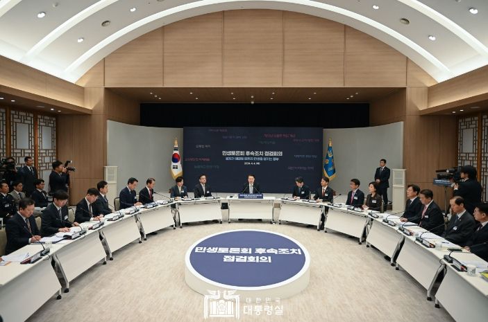 [제주교통복지신문 김강석 기자] 윤석열 대통령은 4월 4일 오전 대통령실에서 ‘문제가 해결될 때까지 민생을 챙기는 정부’를 주제로 「민생토론회 후속조치 점검회의(경제분야)」를 개최했다. 이날 회의는 지난 2일 사회 분야 회의에 이어 경제 분야 실천과제 이행과 향후 계획을 점검하기 위해 마련됐다.
