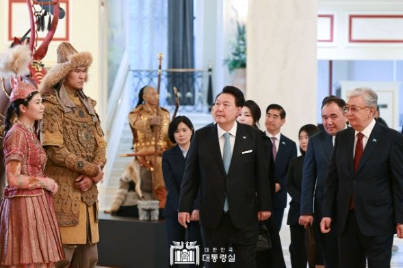 [제주교통복지신문 김강석 기자] 윤석열 대통령 부부는 6월 12일 오후 카자흐스탄 아스타나 드라마극장에서 열린 ‘한-카자흐스탄 문화공연’에 참석해 양국의 정상급 예술인들과 고려인이 빚어낸 화합의 공연을 관람했다.