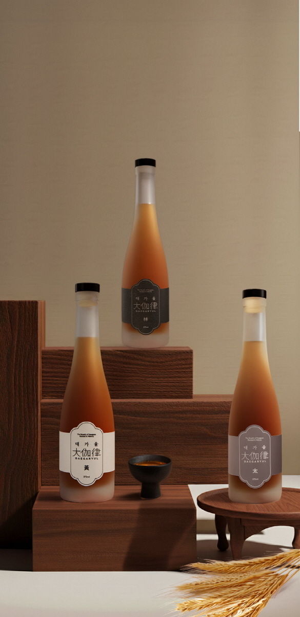화갑농원 관계자는 “대가율은 고령에서 재배한 보리를 원료로 한 보리증류주”라며 “제품명과 구성은 가야금 음계에서 착안했다”고 설명했다.