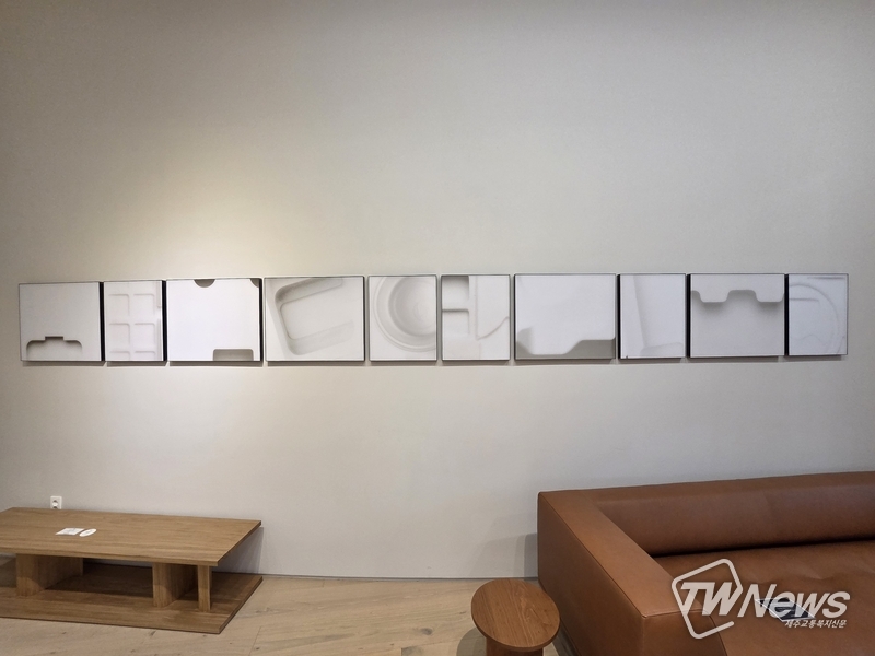 벽면을 따라 배열된 연작이 사물의 형태와 표면을 다양한 시선으로 보여주며 공간에 대한 작가의 해석을 드러내고 있다. (사진=이문호 기자)