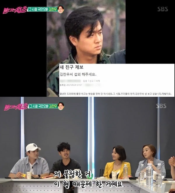 시청자들도 전설의 청춘 스타 김찬우 배우가 '불청'에서 언급돼 그의 근황이 핫이슈로 떠오르자 반갑다는 의견을 개진 중이다.