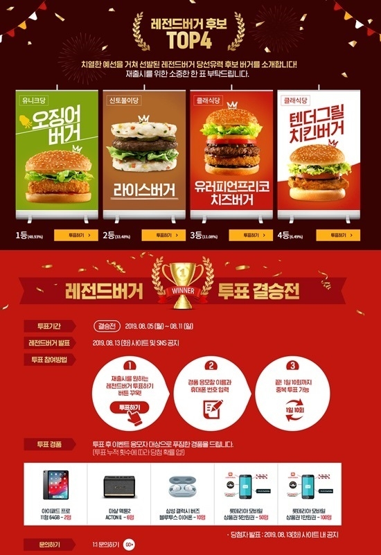 롯데리아는 참여율을 높이기 위해 투표참여자에게 푸짐한 경품 혜택도 제공한다.
