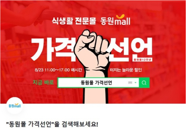 동원몰 가격선언 키워드는 이에 따라 인스타그램과 트윗 등을 강타하고 있으며 신규회원으로 가입해야 하자는 제안도 나온다.