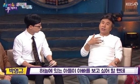 [제주교통복지신문=제주교통복지신문편집부] 배우 박영규가 아들을 잃었지만 애틋한 자신만의 방법으로 아들을 위해 살아감을 밝혀 뭉클함을 자아냈다.3일 목요 예능 KBS '해피투게서4'에서다. 박영규는 이날 15여년 전 불의의 사고로 먼저 떠나보낸 아들을 위해 늦은 나이에도 성악을 공부하게 됐음을 고백해 눈길을 끌었다.