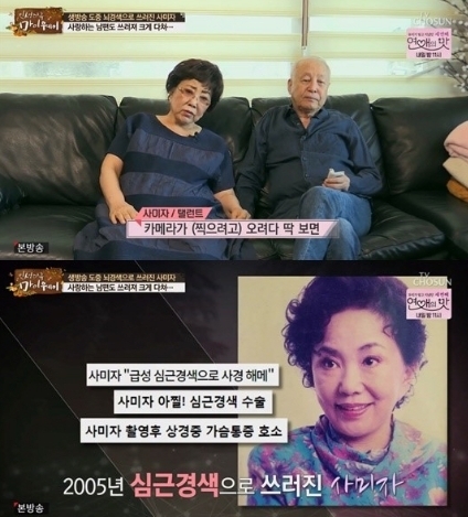 당시 사미자는 "심근경색 수술 후 깨어나니 사지가 마비된 상태였다. 손가락조차 움직이지 않아 '난 이제 끝났구나'라고 생각했다. 그 순간 남편이 보고 싶어졌다. 그래서 있는 힘을 다해 엄지 손가락을 움직여 간호사를 불렀다"며 "간호사는 내 상태를 고려해 면회가 어렵다고 했지만 내가 엄지 손가락으로 완강하게 의사 표시를 하자 결국 남편을 병실 안으로 들여보내줬다"고 말했다.