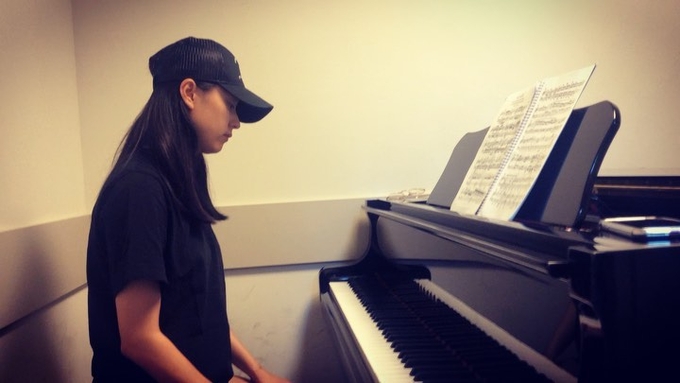 공개된 사진 속에는 한효주의 모습이 담겨 있는데, 모자를 쓰고 피아노를 치고 있는 모습이 포착됐다.