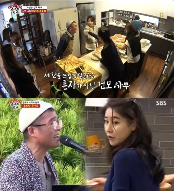 이날 김건모는 '천재'라는 이승기의 감탄이 쏟아질 정도로 음악을 몸으로 느끼고 일상화 된 모습을 보여줬다. 뿐만 아니라 그는 시시 때때로 주방에서 음식을 준비하는 장지연에게 가 살뜰이 살피고, 그가 건네주는 음식을 받아먹으며 행복함을 드러냈다.