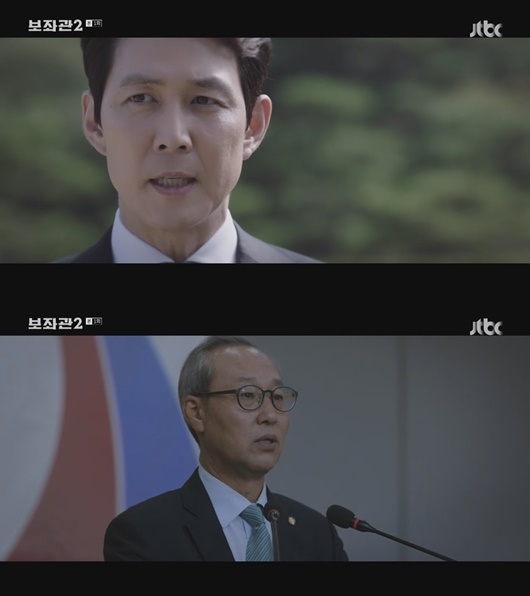 [제주교통복지신문=전희연 기자] '보좌관 시즌2' 이정재의 복수전 첫 타자는 김익태가 됐다.11일 방송된 jtbc 드라마 '보좌관 시즌2(이하 보좌관2)'에서는 장태준(이정재)이 윤혜원(이엘리야)와 반격에 나서는 모습이 그려졌다.