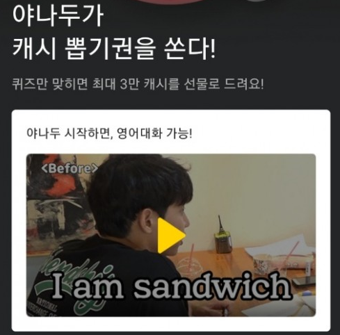 한편, 야나두는 10분이라는 짧은 강의 시간으로도 핵심패턴을 통해 쉽고 빠르게 영어 실력을 늘릴 수 있도록 설계한 프로그램으로 각광받고 있다.