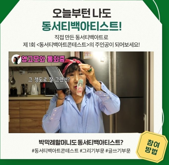 동서티백아트 콘테스트는 다음 달 27일 마감되며, 응모 방법은 소셜네트워크서비스(SNS) 인스타그램을 통해 '#동서티백아트콘테스트' 그리고 분야에 따라 '#그리기부문' '#글쓰기부문'의 해시태그를 올려주면 완료된다.