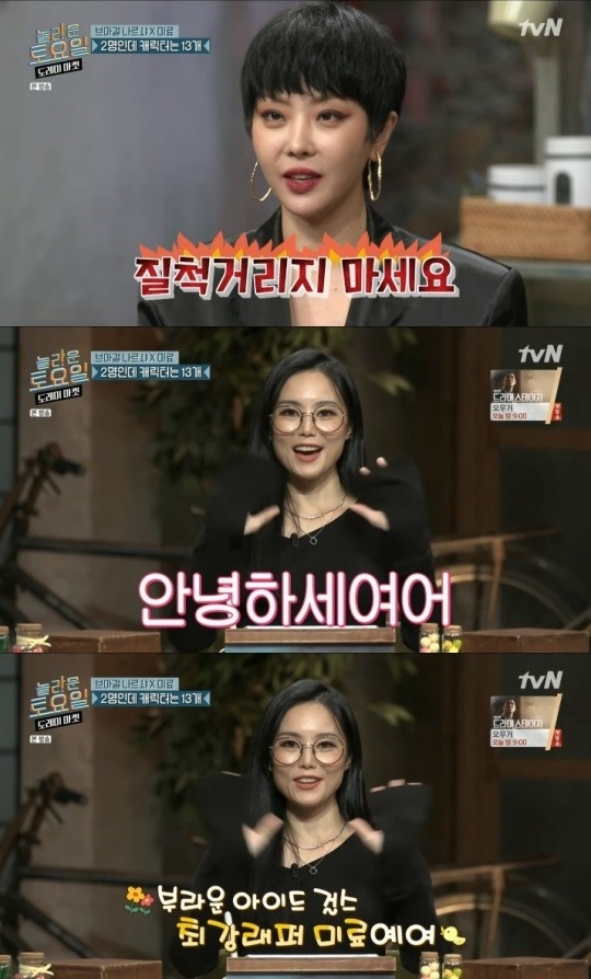 [제주교통복지신문 박희찬 기자] 23일 오후 방송된 tvN ‘놀라운 토요일’에 브라운 아이드 걸스 나르샤, 미료가 출연했다.
