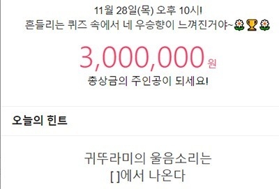 잼라이브 오늘의 힌트, 귀뚜라미의 울음소리는 'OO에서'