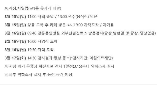 ※ 지침 의거 무증상 확진자로 검사 1일전(3.15)부터 역학조사 실시